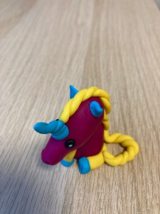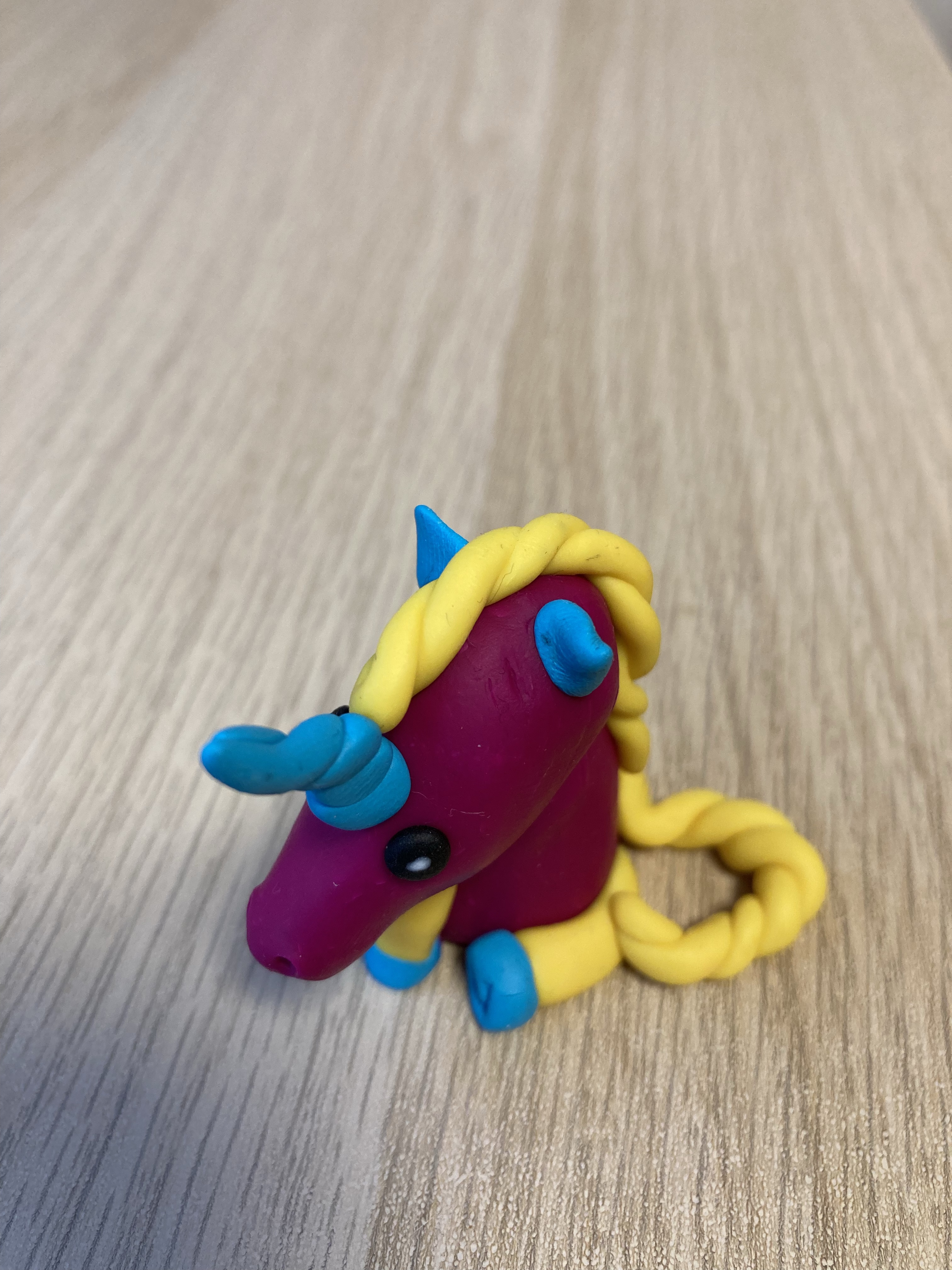My spouse joked that, judging by its colors – fuchsia, yellow and blue (the blue is called Peppermint, don’t ask me why) -, it’s typical of a specific music scene from the nineties. The staff who helped me craft this unicorn, is only slightly older than me, so she understood.