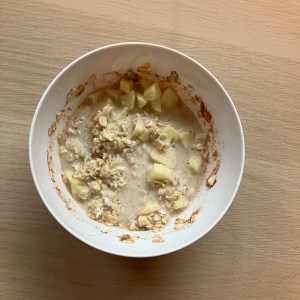 I made overnight oats once again this week, topping them with a tropical dried fruit mix that has an E Nutriscore, meaning it is about the least healthy food choice in its category. No photo this time.