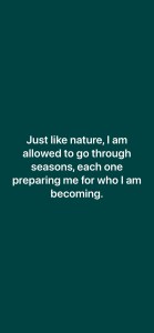 I like how this affirmation compares human life to nature (or rather, the rest of nature). Indeed, I am allowed to go through seasons and each of the seasons prepares me for what’s ahead.