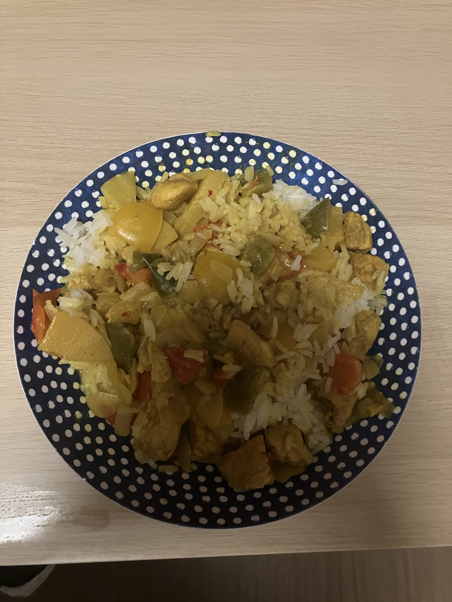 First, like I think I shared last month, I had planned on cooking another chicken curry but two consecutive staff who would be doing the cooking with me, called in sick. When, in late November, I found out that a staff who used to work here until the summer, would be working a shift again on December 16, I asked her whether we could cook the curry then. She was fine with this as long as I made sure the ingredients were ordered on time. And so I did. We used a recipe from one of my favorite Dutch cooking websites. It called for a teaspoon of curry powder per serving, which I thought was over the top, but it turned out to be good. We even added some chili flakes for some extra spice.
