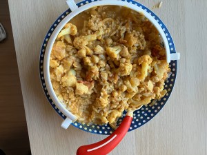 Last Saturday, I cooked a delicious cauliflower, tomato and chickpea curry. This recipe was in Dutch, by the way.