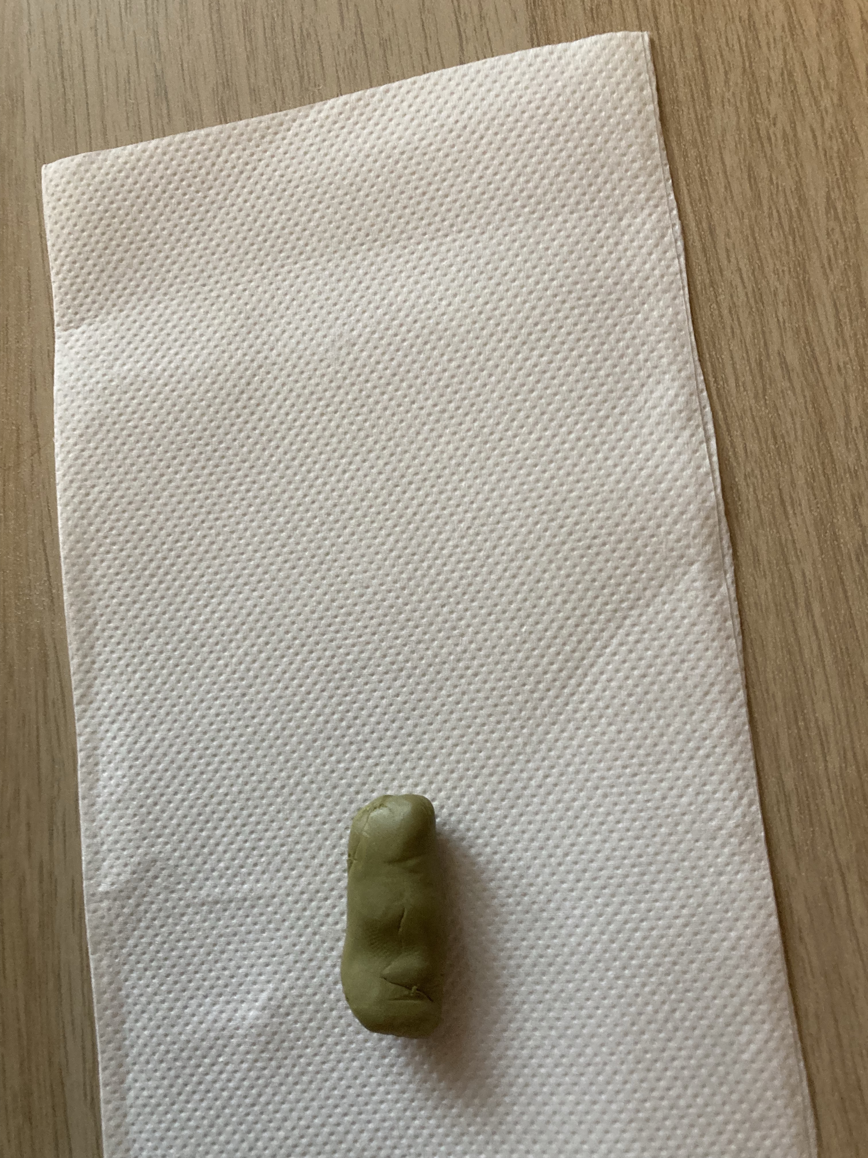 By the way, here is a blob of polymer clay in the first color I created using my new collection of color mixing recipes and my precision scale: moss green.
