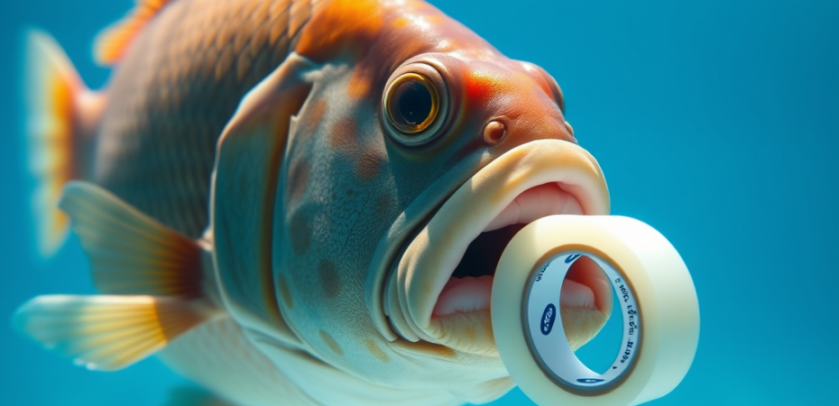 I do wonder though, isn’t a roll of sticky tape far too large for a goldfish? It will know very soon. Or not.