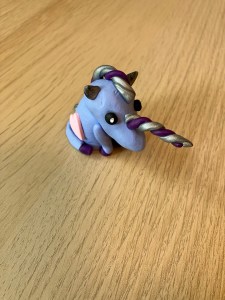A few years ago, I talked to my then staff about possibly creating unicorns to go into the care agency’s shop. That idea never materialized, but I’ve brought it up a few more times. I’d just love to have polymer clay as my “job”. Here, I chose anyway. And I also wrote on another prompt, because creating the unicorns is the main thing that made me smile recently.