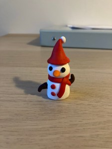 I still have a lot of finished polymer clay creations I didn’t show you all too. My most recent one is the below snowman.